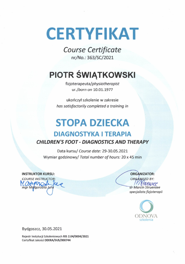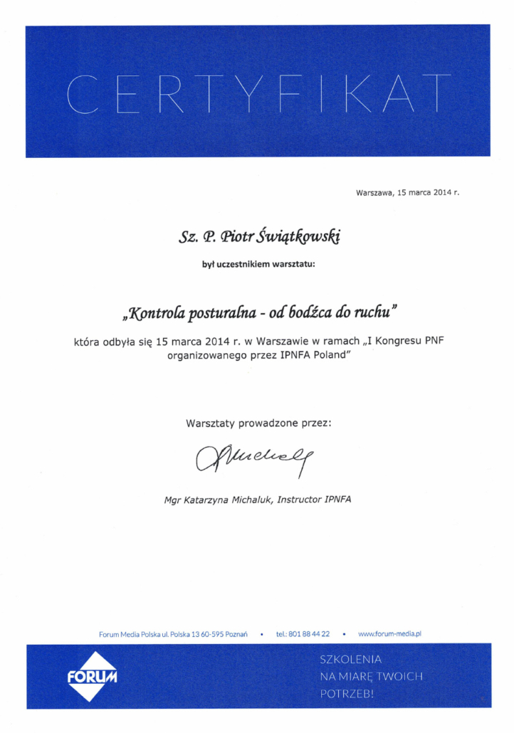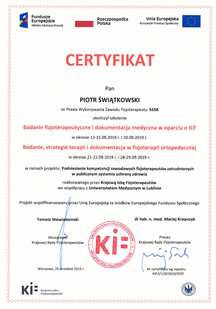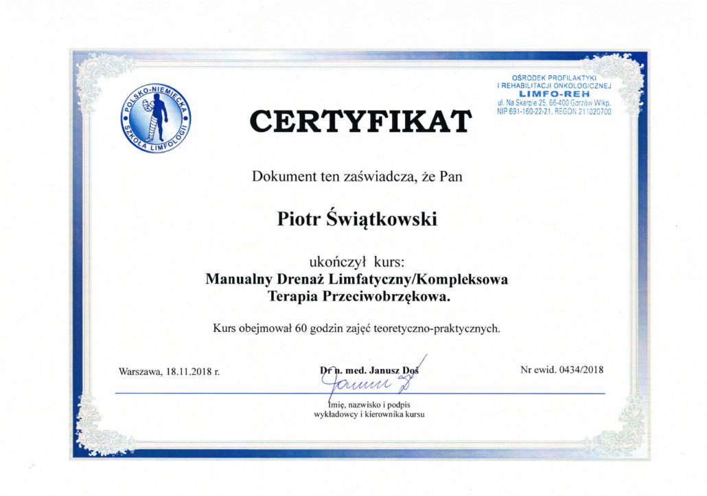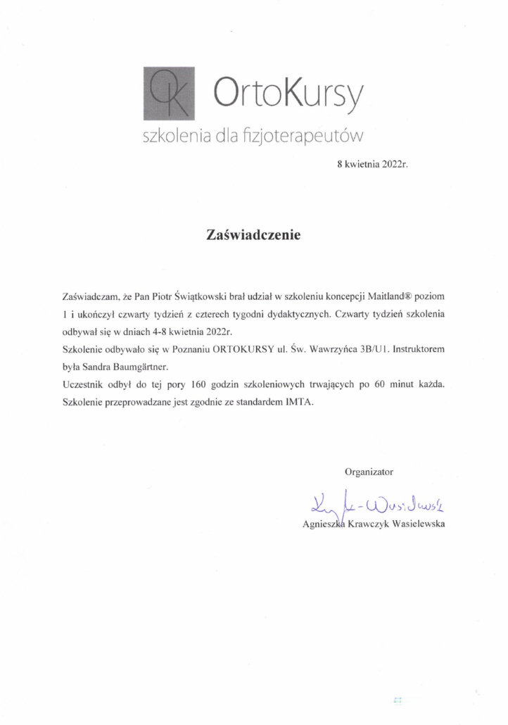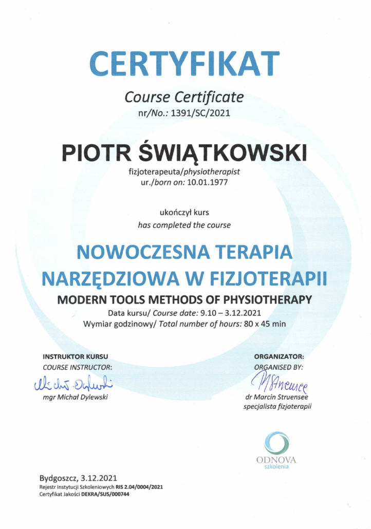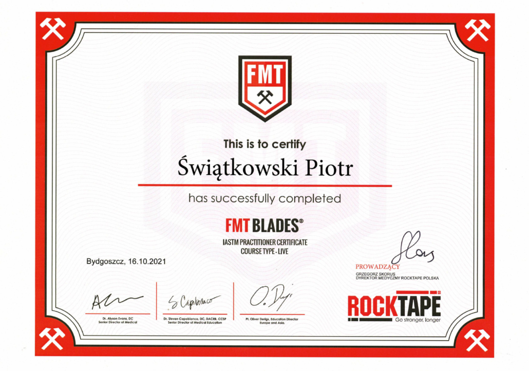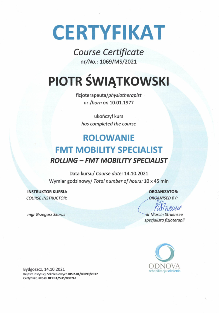 Jestem magistrem pedagogiki oraz magistrem fizjoterapii. Pedagogikę ukończyłem na Uniwersytecie Mikołaja Kopernika w Toruniu, fizjoterapię w Collegium Medicum w Bydgoszczy Uniwersytetu Mikołaja Kopernika w Toruniu (dawniej Akademia Medyczna w Bydgoszczy). Ponadto ciągle doskonale swój warsztat pracy, uczestnicząc w szkoleniach i warsztatach. Już jako dziecko, widząc moją mamę przy pracy, która jest lekarzem oraz jak wiele daje jej satysfakcji pomaganie innym, chciałem robić to samo.