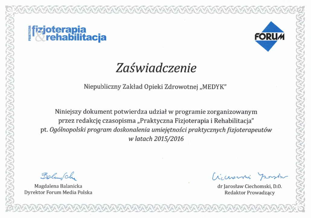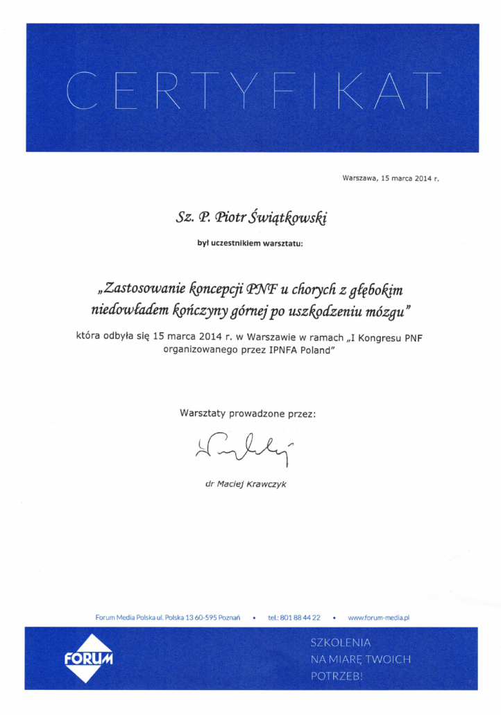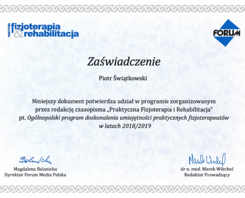 Swoje doświadczenie zdobyłem pracując w przychodniach rehabilitacyjnych w Bydgoszczy, Toruniu oraz Lubiczu. Obecnie od 16 lat pomagam pacjentom w swojej przychodni rehabilitacyjne, którą stworzyłem od podstaw. Uważam się za osobę bardzo otwartą nie tylko na kontakty z dorosłymi. Myślę, że dzieci i obcowanie z nimi, wzbogaca nasze doświadczenie, uczy wsłuchiwać się w potrzeby drugiego człowieka, co w zawodzie fizjoterapeuty jest kluczowe. Doświadczenie jakie zdobyłem, pracując z młodzieżą w placówkach opiekuńczo- wychowawczych, procentuje obecnie w postaci umiejętności współpracy zarówno z dziećmi jak i młodzieżą.
